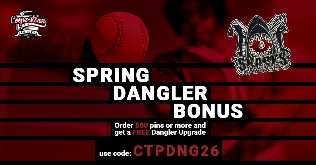 This March, order 500 or more custom pins for your team and receive a FREE dangler upgrade. Add that extra swing to your design! Use code CTPDNG26 at checkout. Offer valid March 1-31, 2026.